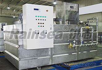 4、溶液槽:由三槽溢流式組成,每個(gè)槽中安裝一個(gè)電動(dòng)攪拌機(jī),將需投加的溶質(zhì)與水按一定比例配制后得到充分混合。
