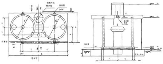 5、表中排水管在±0.00以上接出,根據(jù)用戶(hù)要求還可以改為±0.00以下接出:即DLB-100、120、150、200四種規(guī)格的排水管標(biāo)高可改為-0.45m。省去兩個(gè)彎頭,直接接入檢查井,用戶(hù)在訂貨時(shí)應(yīng)在合同中注明要求。